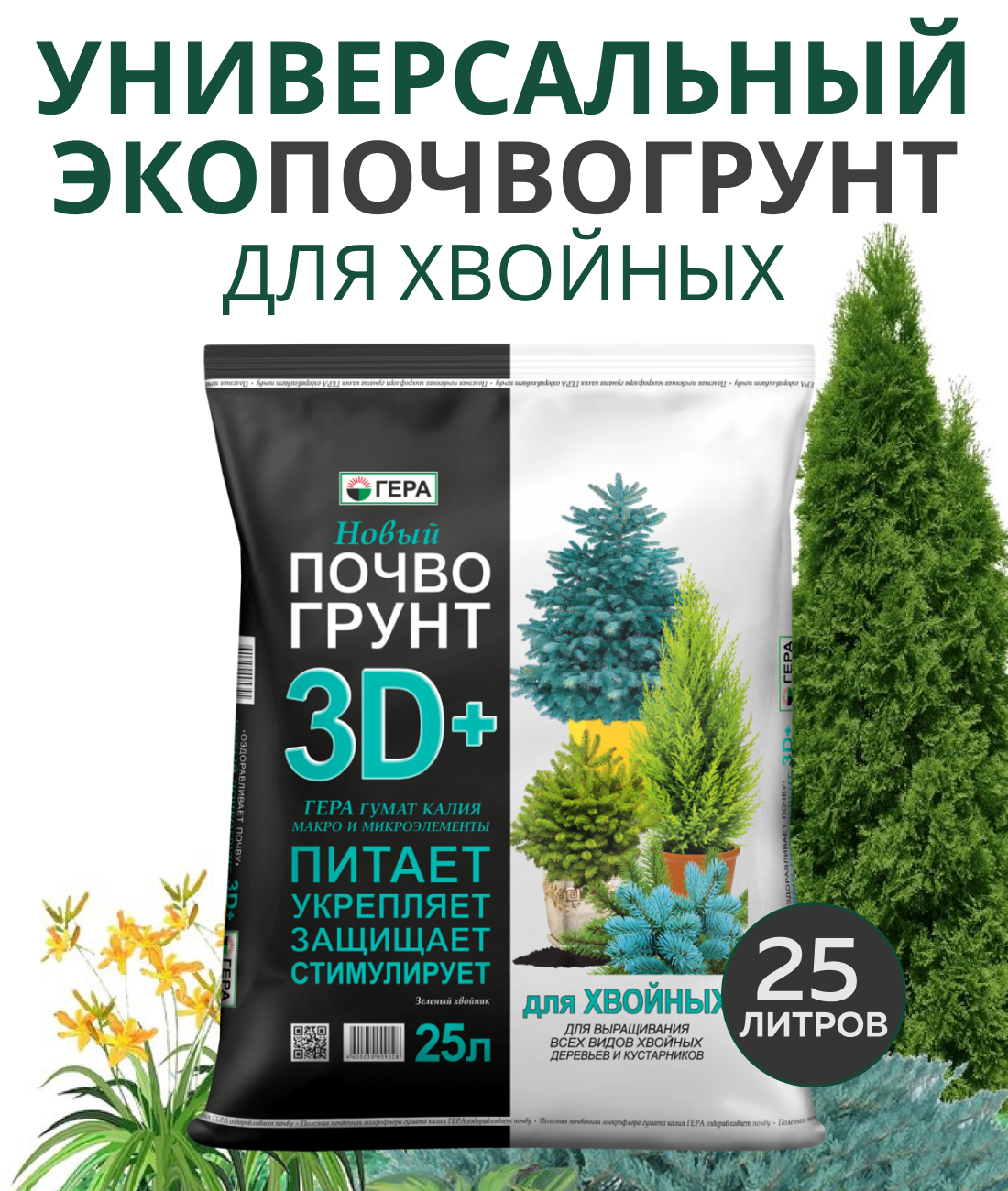 Почвогрунт ГЕРА 3D+ Универсальный 25 л 1...