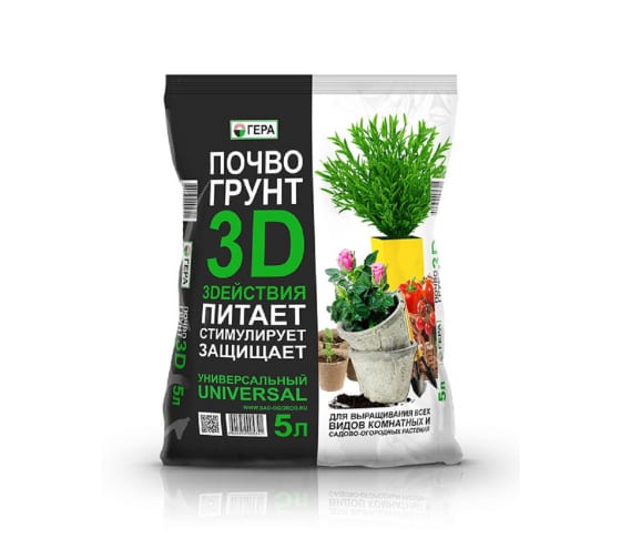 Почвогрунт ГЕРА 3D+ Универсальный 5 л 10 штук/место/540