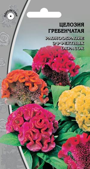 Цветки мелкие с желтым, оранжевым, розовым и пурпурно-красным околоцветником, собраны в массивное соцветие с более или менее крупными, глубокими извилинами по верхнему краю, напоминают петушиный гребень. Предпочитает солнечные места.